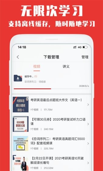 这个韦林app看起来是个考研党的福音!里面资料超全,配套练习题也很多,还有各种免费课程可以学。最方便的是支持离线下载,缓存到手机后随时随地都能看视频和讲义,完全不受网络限制。英语单词这块也有不少资源,结合知名单词书讲解得很详细,挺适合备考的。
