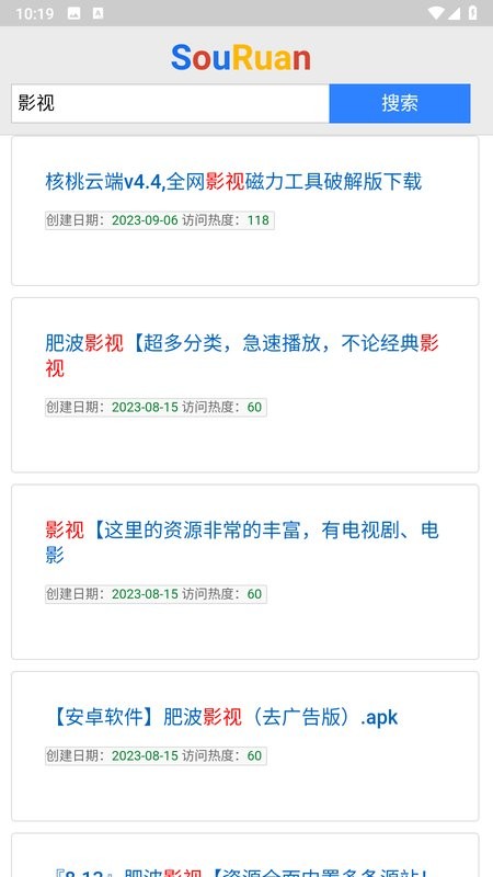这款叫“搜软”的手机版应用工具真的挺方便的!它主要是用来搜索各种手机软件资源的,而且操作很简单,输入两个关键词就能找到想要的东西。不管是工具、游戏还是小说什么的,这里都有,分类也很清晰,找起来很快。
