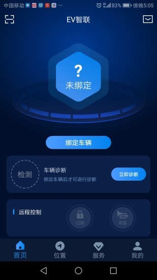 1、EV智联app支持远控车门锁开关、远控车辆鸣笛。