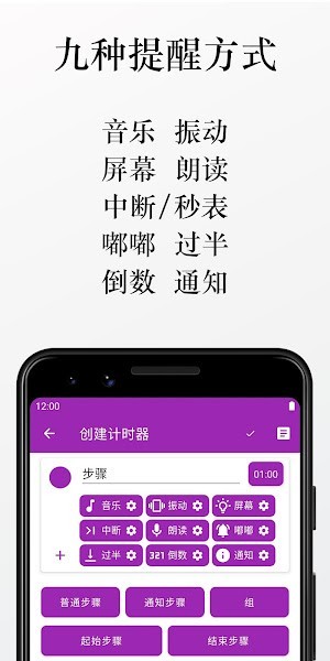 -- 提供多种自定义提醒方式,包括音乐反馈、语音反馈、振动反馈等