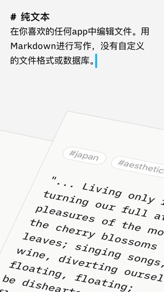 精简的界面,舒服的输入界面,没有任何的广告,用户可以在软件中专注于自己当前的内容输入和记录。所有记录在软件内的内容,都会云同步到Dropbox中。