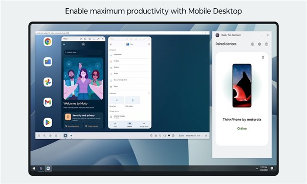 ready for多屏协同通过将您的设备连接到平板电脑来增强您的手机体验 Ready For 释放摩托罗拉智能手机的强大功能。使用 Ready For Assistant一步连接您的手机和平板电脑。 然后,您可以共享手机的 5G 连接、无缝传输文件、访问手机和剪贴板内容等。注意:特性、功能和设计可能因设备或地区而异。