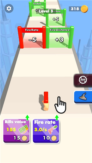 最富枪王(Moneygun Run)是一款休闲益智手游。在游戏中我们会拥有一把钞票枪,它会不断发射出不同数量的钞票,玩家需要操控钞票枪,在道路中进行奔跑闯关,途中物品之多,用你的钞票将他们通通买下,成为真正的最富枪王。