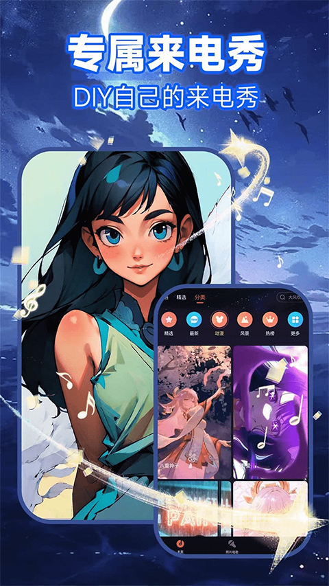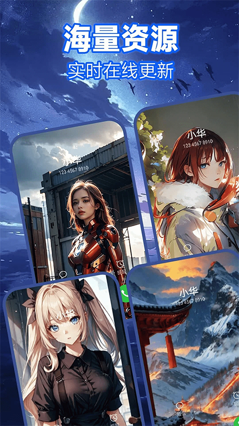 2、100W+动态壁纸来电背景,炫酷个性、唯美风景、萌宠可爱、网红明星、卡通动漫,每天更新来电主题1W+,让您有更多选择!