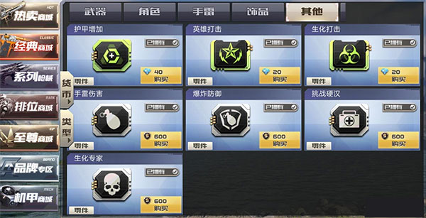 游戏商店进行了人性化升级,新增了多项便利功能。不过,零件系统的策略性较高,新手可能需要花时间研究才能最大化收益。比如主武器推荐装配伤害增加、射程增强等零件,而副武器则适合护甲增强和C4相关零件。