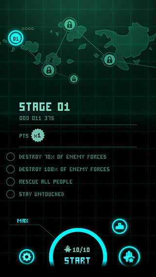 至于操作上的表现则贯彻了飞行射击游戏的简单特色,玩家只需要在屏幕上按住飞机左右滑动即可控制其位移,而攻击则依然采用自动模式,玩家无需太过专注在其中。本作没有任何的道具按键,玩家仅仅关注自己的飞机就好了,甚至连暂停按键都没有,以此来模拟真实的战斗情况,毕竟现实的战斗中总不能说先暂停休息一会再战吧。