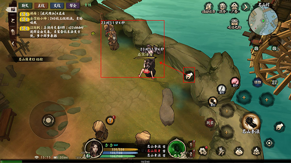 6、从此开始进入正常练级流程,优先做任务(任务给的奖励特别丰厚),在练级的过程中会碰到大量的“宝物”型怪物,遇到这种怪物,推荐用满级的“名山双兵”尽快收割获取提升的装备。