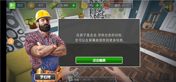 5、收拾完这么个屋子之后你才能正式的开始装修,游戏里面的装修套路和之前介绍的那个装修模拟器很想,比如暖气和洗手台这种家具都是要你去自己拧螺丝的。