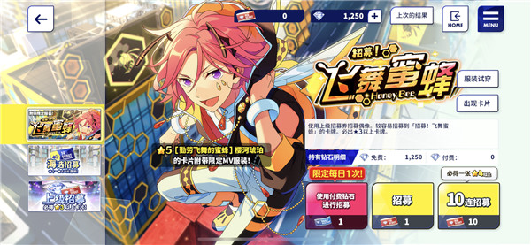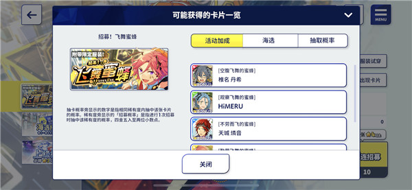 >>海选招募:可以获取☆1~☆4的卡片,海选招募券通过演唱会掉落,不可购买。