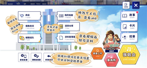 那么介绍完了卡片,我们怎样才能获得卡片呢!!游戏内获得卡片的途径为:1. 招募(抽卡)2. 肝活动(参加巡回演唱会)