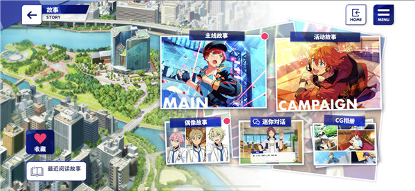 故事用于查看主线剧情和已解锁的活动剧情,偶像个人剧情等。每阅读一话新故事便可以获取10颗免费钻石。