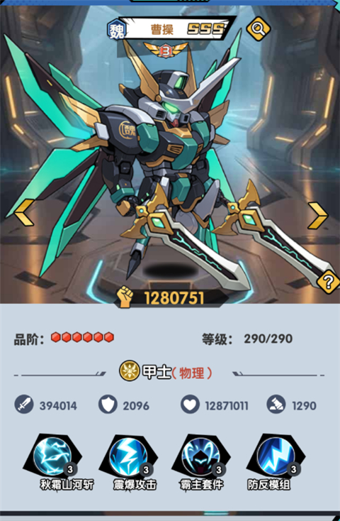 为物理类机甲,技能伤害较高,通常只作用于少量敌人。