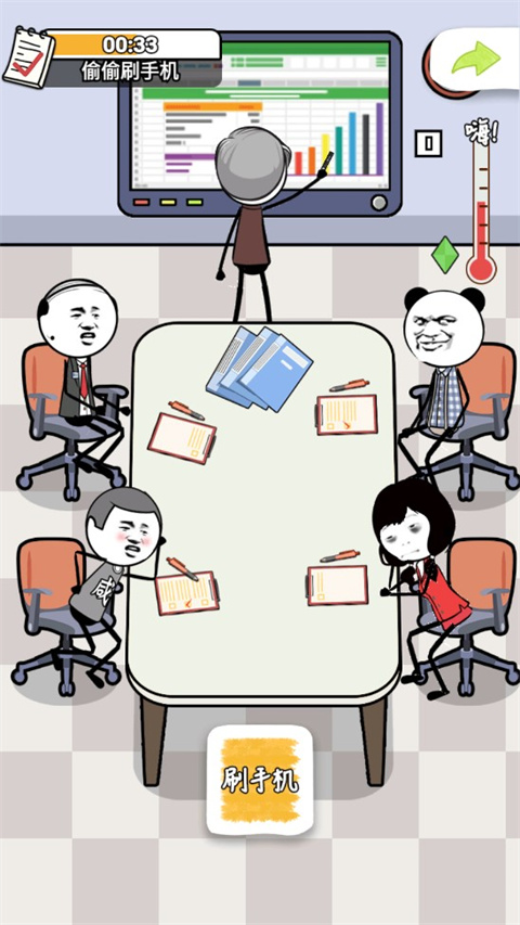 7、这里点击刷手机便可开始游戏,需要避开老板的目光;