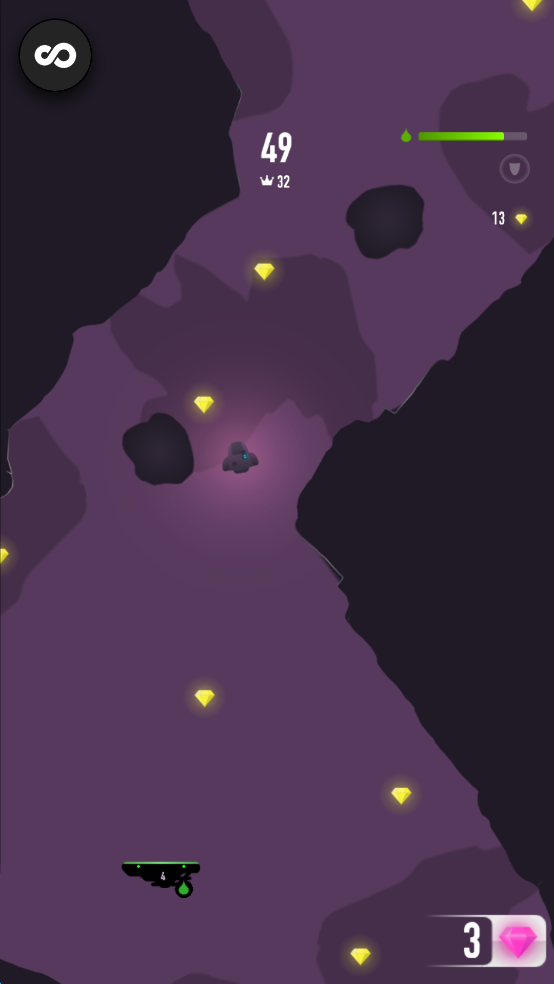 星系探索(Cave FRVR)是一款以星际太空为背景的复古街机风休闲冒险手游,玩家将扮演一名太空飞行员,驾驶一艘宇宙飞船深入外星球的洞穴深处进行探索。游戏中,玩家需要通过点击屏幕控制飞船引擎的推力来规避洞内的钟乳石、小行星、炸弹等各种障碍物,且在过程中你还需收集宝石来升级飞船装备,如激光、能量盾等等,并利用沿途的加油平台进行补给,努力将飞船平稳降落在目标基座上,十分考验玩家的操作技巧和反应速度。