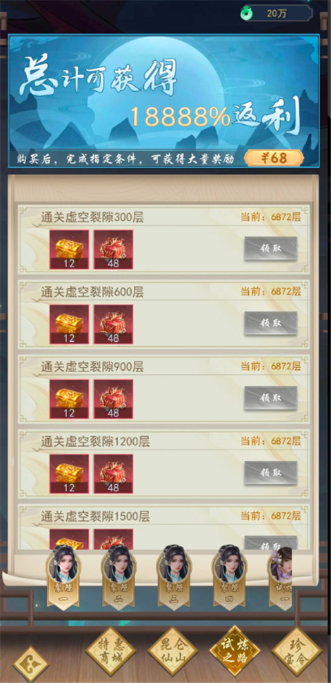 氪金方式:不建议6元首充,买8元周卡,给妖妖碎片,裂隙离线自动推图也很舒服。或者直接6+6+18拿满首冲送个周卡。
