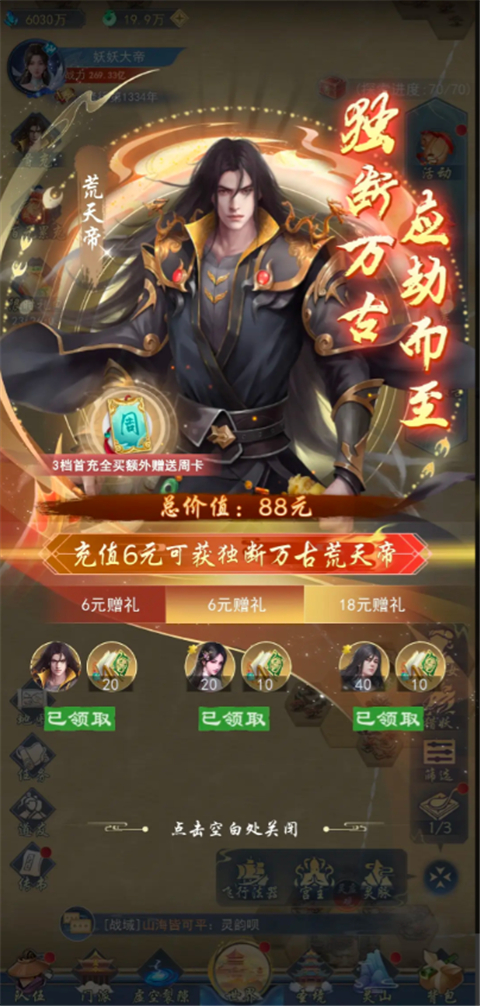 氪金方式:首冲6+6+18=30拿满免费激活周卡,永久卡68,然后搞个月卡,一共30+68+30=128。