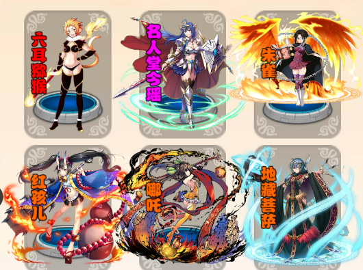 3、名人堂今瑶瑶+六耳猕猴+红孩子+哪吒+地藏菩萨+朱雀