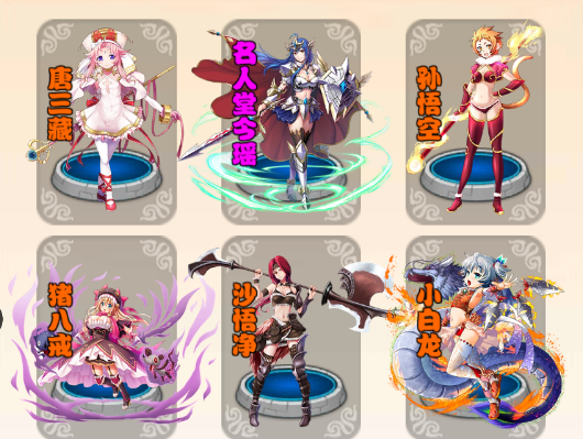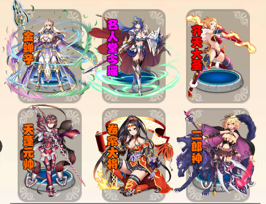 2、名人堂今瑶瑶+金蝉子+齐天大圣+天蓬元帅+二郎神+卷帘大将