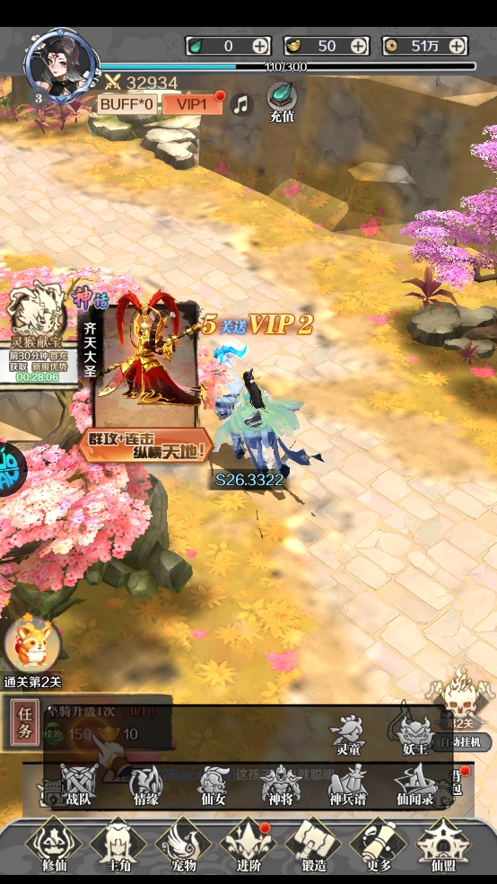 4、画面绚丽玩法多,轻点自动过关卡,轻松体验仙侠趣。