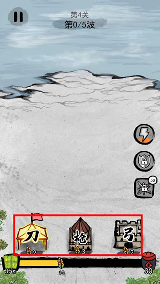 4、会有不同兵种的敌人来袭,要通过合理的排兵布阵打败它们;