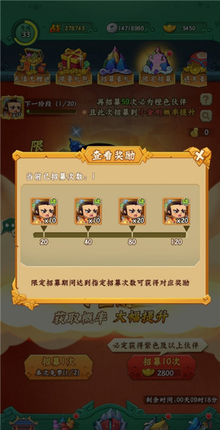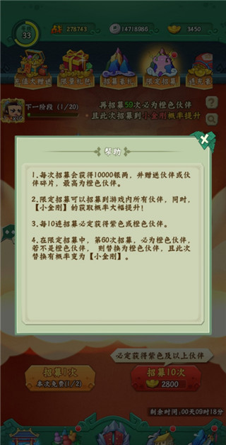 3、在招募的时候,玩家也是会有一定的几率获得碎片和其他的角色,但是每次的招募都是会获得一定数量的银币奖励!