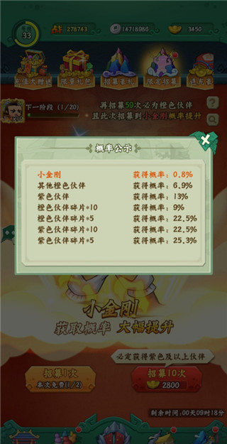 4、在各个角色的获得几率上,小金刚的获得几率也是比较低的,但是多次的参与之后也是会必得这个角色!