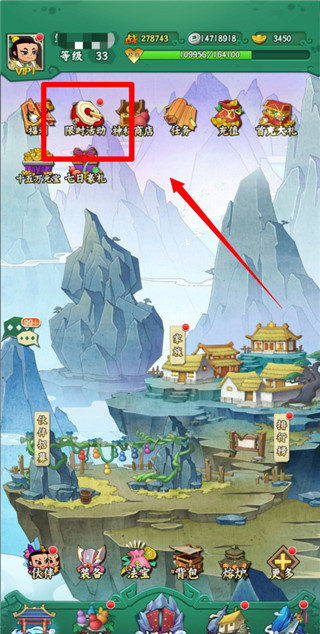 1、首先,玩家在进入到游戏中之后先点击上方的限时活动打开限时活动界面!