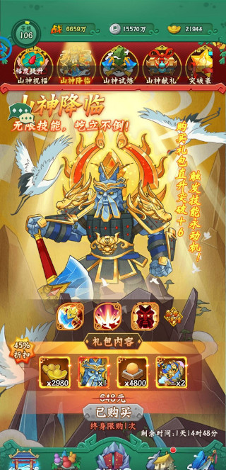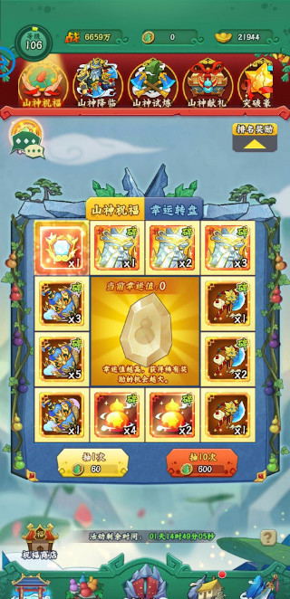 一、山神祝福消耗祝福值获得,每次消耗60点