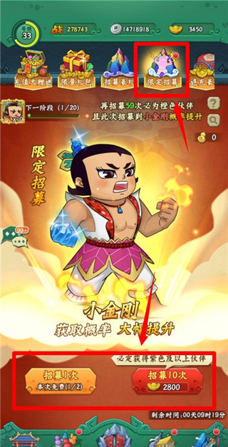 2、之后在限时活动中找到限时招募玩法点击切换到限时招募界面,然后根据招募方式就能进行招募了!
