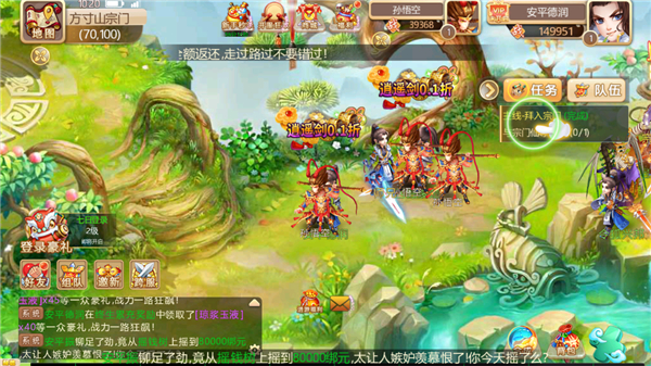 逍遥剑0.1折手游是一款精美、风景如画的2D网络游戏,以《西游记》为剧情蓝本及卡通的写实风格,为我们呈现了一幅画面精美、风景如画的虚拟世界。游戏内置0.1折充值优惠,648礼包只需要6.48,还有大量签到、在线时长任务,可免费领取丰富资源!