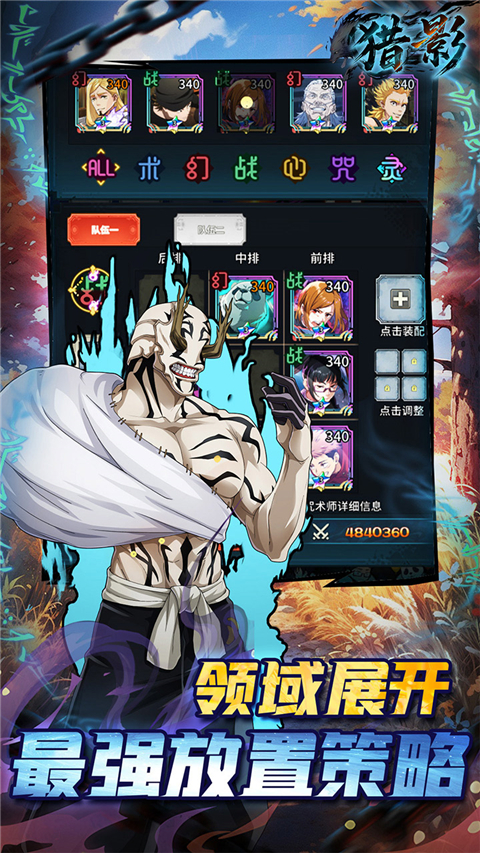 1、集合了咒、战等不同类型的咒术师供玩家培养,组建别样的对决阵容。