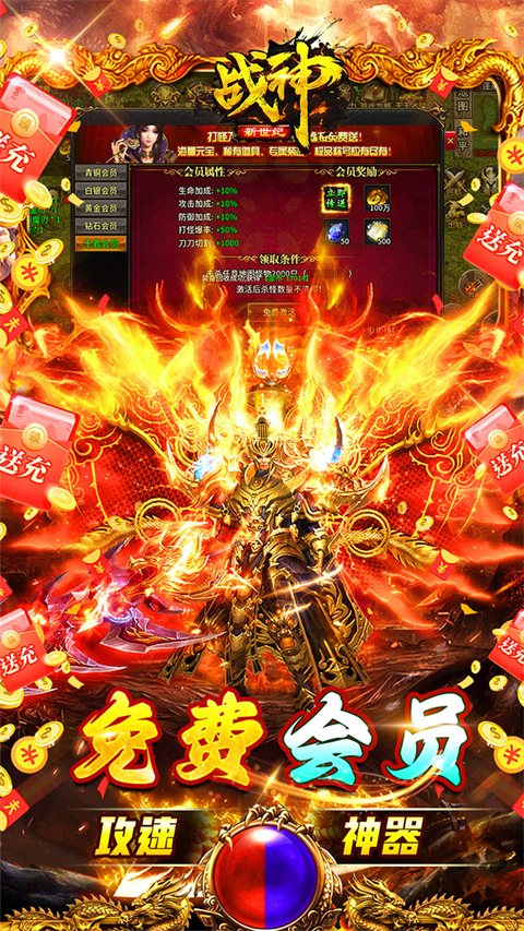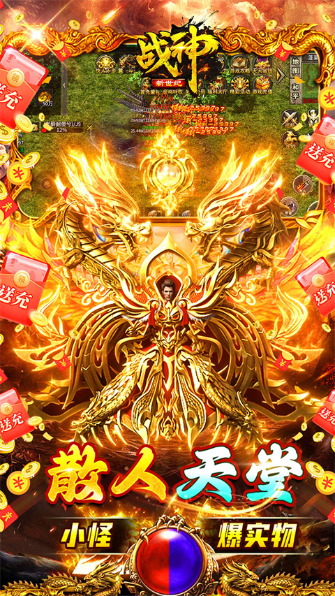 战神新世纪是一款经典单职业传奇正版手游,同时也是专门为散人玩家推出的传奇版本,玩家上线即可免费领取自动回收功能、续航挂机功能!在游戏中武器、装备、会员特权不需要氪金,只需要刷图砍怪即可掉落,爆率和攻速方面相当开门(极高),还有机会获得充值卡,击败BOOSS获得实物道具兑换充值红包,挂机五分钟等级直接上转职!