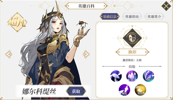 蜘蛛女皇(娜尔科缇丝):换形队的输出核心,当存在10个换形BUFF时,输出毁天灭地。