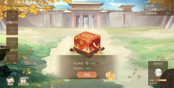 拾取宝箱后,宝箱会显示在页面左侧位置,根据宝箱品质,需要不同的时间后,才可打开宝箱。但是如果中途离开本页面,则所有获得的宝箱都会丢失。宝箱内的道具比较丰厚,所以建议大家拾取后,一定要等待倒计时结束领取奖品。