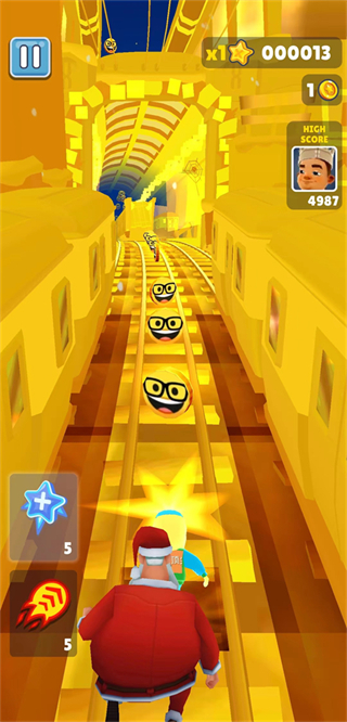 地铁跑酷奇迹顶尖版本是由网络大神定制的全新地铁跑酷版本,又名阿神定制版本,此版本有着独一无二的定制效果,当我们进入游戏之时就能发现,地铁站周围覆盖着一层贵族黄金色,这种颜色是凌驾于所有定制版本之上,宛如一个土豪金版本。除此之外,当我们开始游戏之后,大量的黄金色将会映入眼帘,搭配上定制版的黄色表情金币,让游戏场景之间显得格外协调。不仅如此,地铁跑酷奇迹顶尖版本还定制了众多游戏主角,比如杰克、崔琦、机器人等,将它们的皮肤翻新成全新的色彩搭配,黑白、彩色、纯色等等各种样式搭配都有,让各位玩家的有更多的选择。