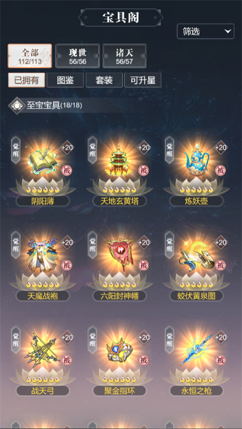 5、宝具宝具分为主动宝具和被动宝具。主动宝具可以在战斗中提供一个额外的主动技能,它是如此强大,所以每个玩家最多同时携带四个主动宝具。