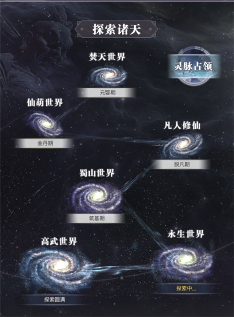 当玩家到达一定等级后,将会解锁探索诸天功能,玩家可以在诸天世界中自由探索,进行采集或者战斗获取收益,还有几率遭遇各种奇遇事。