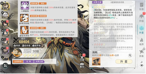 三大输出核心:推图就养王腾或者圣体叶凡,姬皓月单体输出偏向PVP,推图缺少AOE伤害