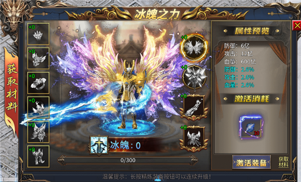 玩家穿戴各种冰魄装备可积攒冰魄之力,提升防御、攻击力。