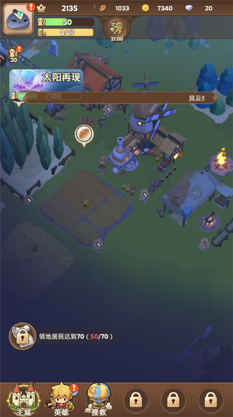 王国大国王是一款模拟经营游戏,这个世界一切都是破烂,人类流浪在外,玩家的目的则是修复房屋、救助人民,打造一个繁华的家园。游戏前期玩家需要开发麦田、树林,建造伐木场、磨坊,获取相应的物资,以提升它们的等级增加生产效率,有了物资后即可建造房屋,为流浪在外的人民拥有一个庇护所,并给与食物给它们。王国大国王游戏中玩家完成相应任务可解锁英雄,英雄可以帮助你拯救被困的人民,还可以委派英雄在建造中,由于不同的英雄拥有相应的属性,合理任命它们在建筑物中可以提升额外的生产效率。