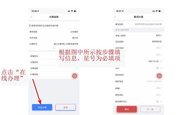 进行实名认证,切换为“安阳市”,点击“高等学校等毕业生接收手续办理”