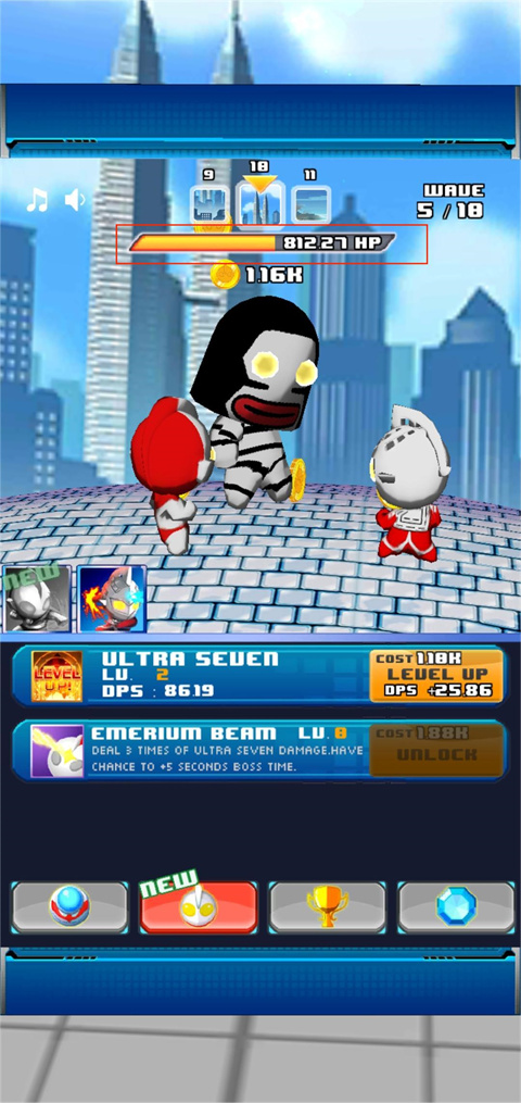 奥特曼兄弟联手(Ultraman Bros)是一款以奥特曼为题材的休闲养成类闯关手游,在这里玩家将带领奥特曼兄弟们踏入了新的旅途,你需要操纵七个不一样的奥特战士,选择你喜欢的奥特曼英雄进行战斗,战斗过程中你会面对各种不同的怪兽,你需要通过点击屏幕来不断的进行攻击,想要快速的击败怪物你还可以使出奥特曼的绝招将他们一一打败!