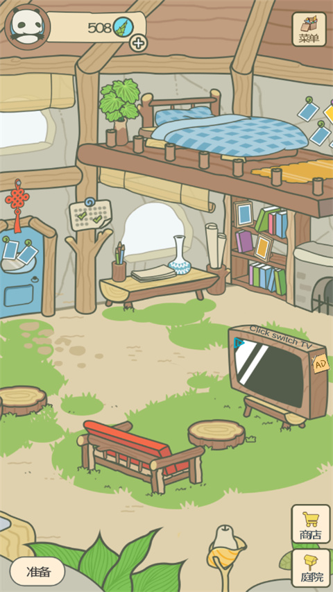 1、首先进入旅行熊猫游戏,在屋子外边我们可以收集竹子;