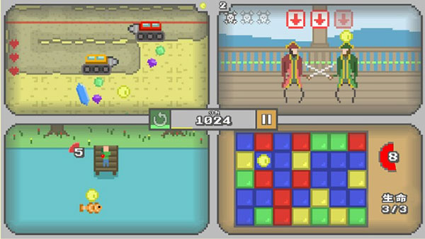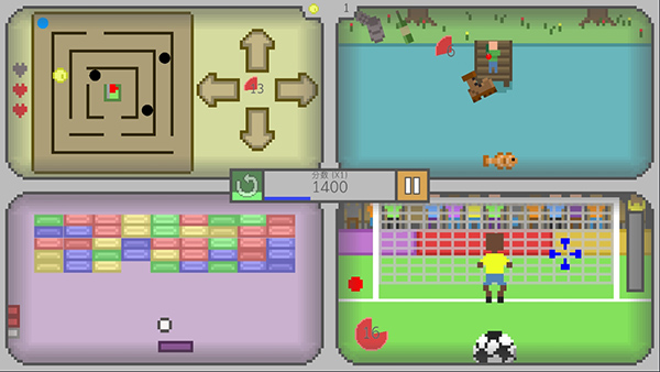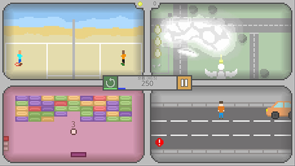 这个游戏最大的特色就是可以在一个界面玩四款不同的街机游戏,失败一次就结束,所以需要特别专注。内置了30多种小游戏,玩法丰富,每次都有新鲜感。尤其是当你同时操作四个游戏时,感觉像是在开四个线程运行程序,脑子容易不够用,但这种挑战也挺有趣的。