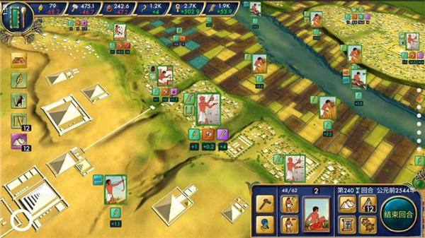 作为玩家,你需要在开荒时期合理分配资源,优先发展人口和农业,逐步解锁科技,提升国家实力。游戏中有丰富的事件系统,包括战争、干旱、宗教仪式等,让玩家亲身体验古埃及的社会变迁。此外,游戏还还原了尼罗河文明的独特宗教体系和地理环境,玩家可以探索未知的区域,甚至与来自其他文明的角色互动。