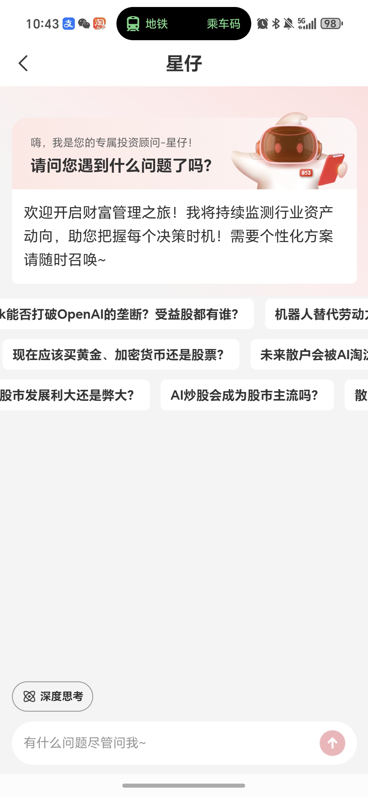3、点击AI顾问 “星仔”,无论是文字对话还是语音输入,都能快速获取个股解读、策略建议等专业服务,提升交互效率。