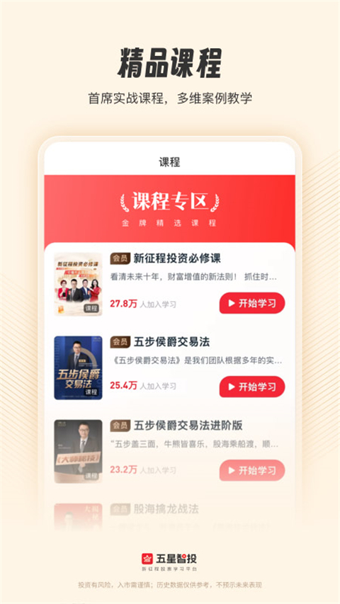 3、App注重个性化服务,依据您的投资经验、风险偏好及目标,量身定制投资课程,并通过AI智能顾问“星仔”提供一对一专属咨询 。
