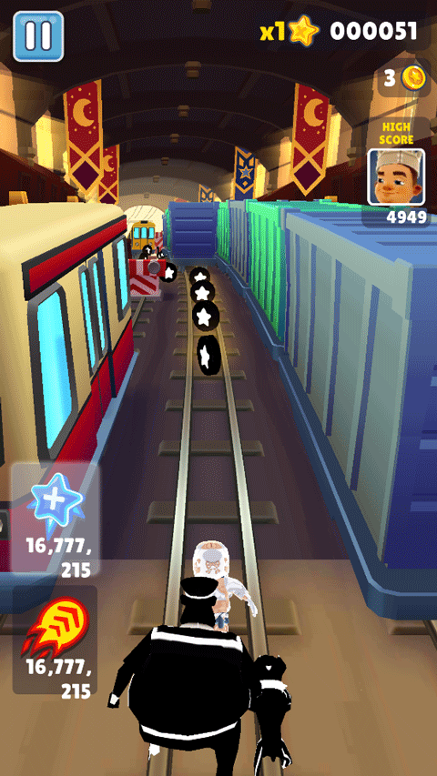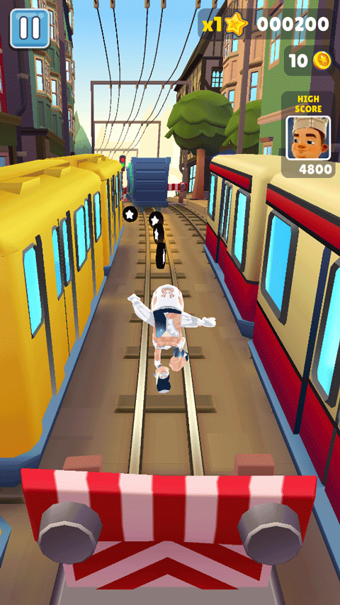 8、当你在3条火车轨道上接金币时,最后一辆火车速度是最快的。