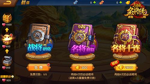 同时,酒馆招募可获得招募积分,达到指定积分可直接领取武将!