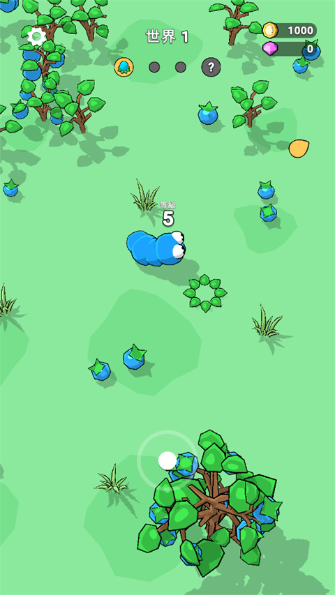 贪吃鬼进化游戏刚开局是一颗蛋,破壳后就会变成一只毛毛虫,你需要通过不停的吃地上的果子来强大自己,其中的果子树和宝箱也不能错过,你攻击果子树后会掉落大量的果子,吞噬果子你会得到快速的成长,而攻击宝箱你会得到一些钻石和道具,道具包含了范围攻击、增加攻击力、快速吸收附近的果子等等。当你的等级高过其他毛毛虫的等级,你还可以去吞噬其他的毛毛虫,吞噬了其他的毛毛虫还会进行进化,长出四条腿来。
